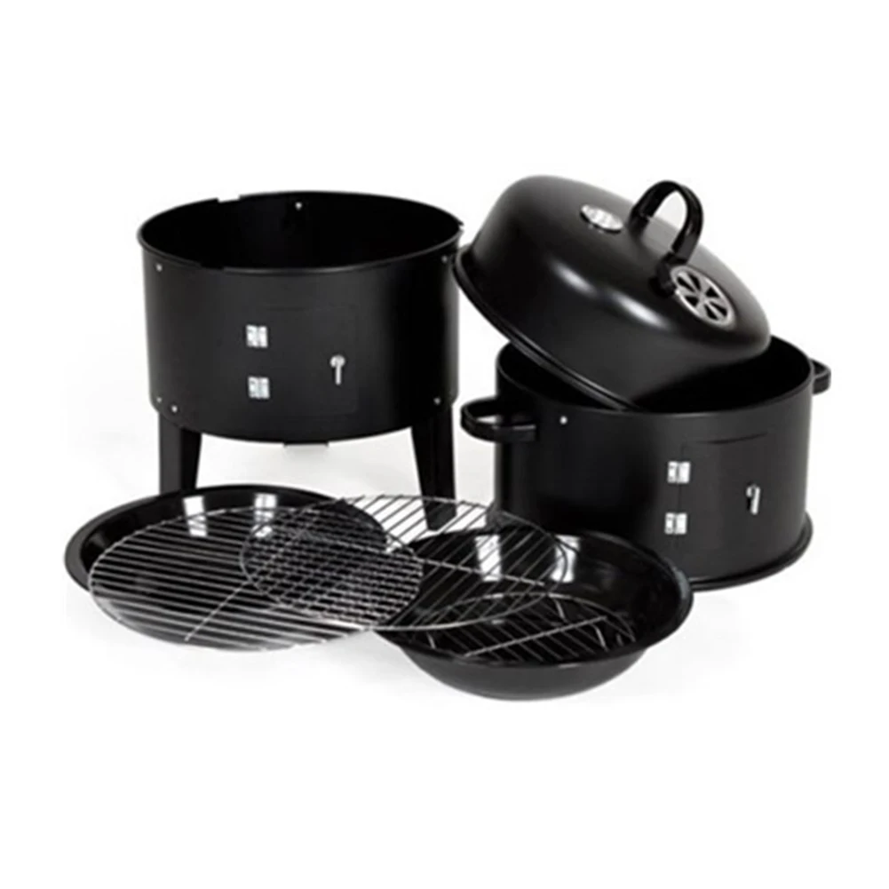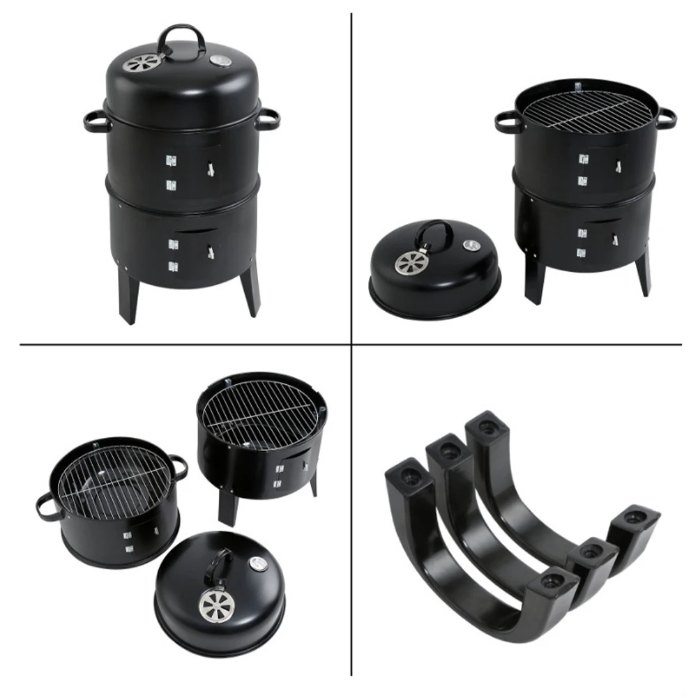 3 in 1 Vertical Charcoal BBQ Smoker Heavy Duty Round Smoking Grill Barbecue Smoker Barrel with Built-in Thermometer for Outdoor