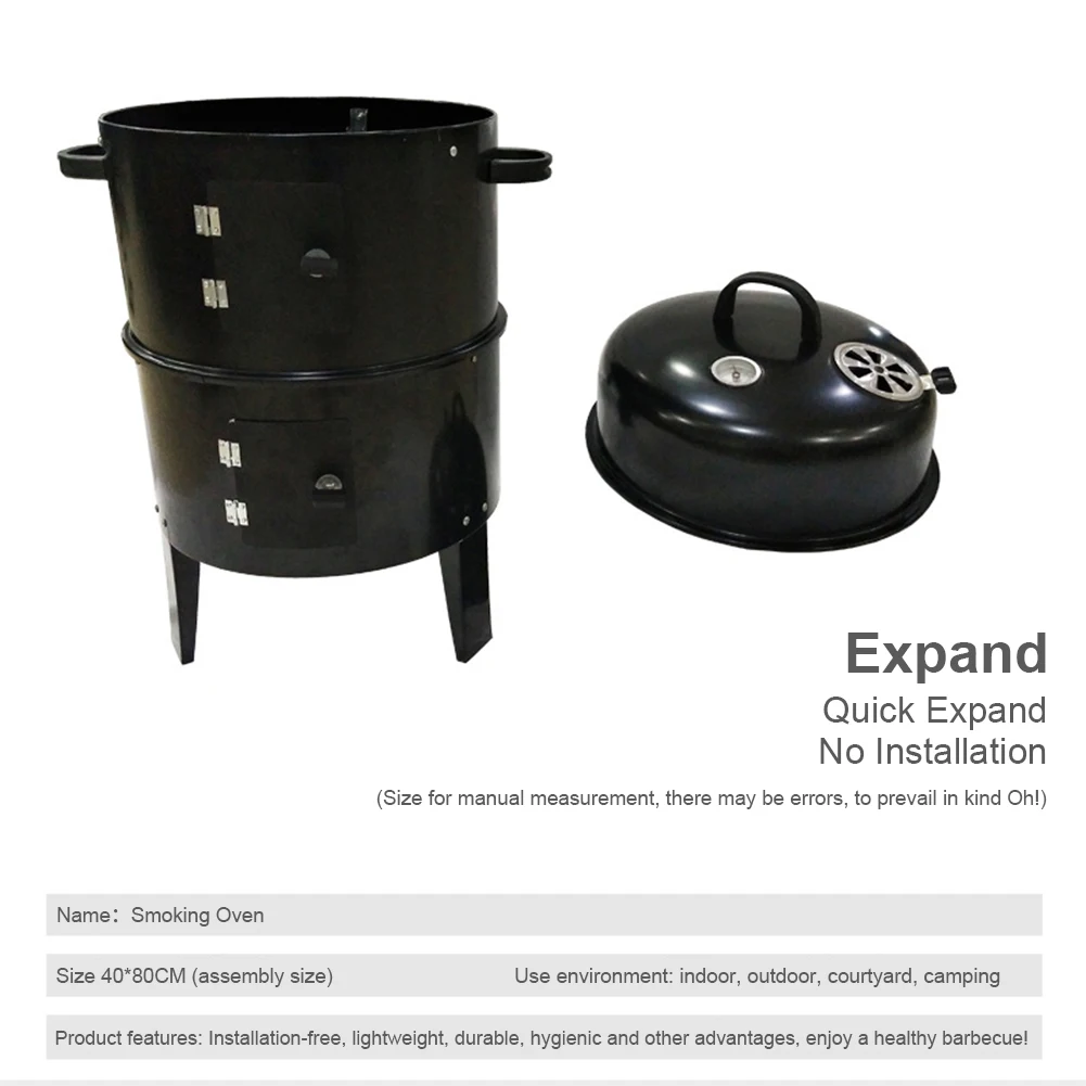 1. Multi-Layer Design: This BBQ grill features a three-tier construction, with the bottom layer serving as a fire pit and adjustable grills for steaming, roasting, baking, or grilling, offering versatile cooking options. Specification: Origin: Mainland China Grill Type: Charcoal Grills Feature: Easily Assembled Size: 510.00x405.00x800.00mm/20.08x15.94x31.5inch
