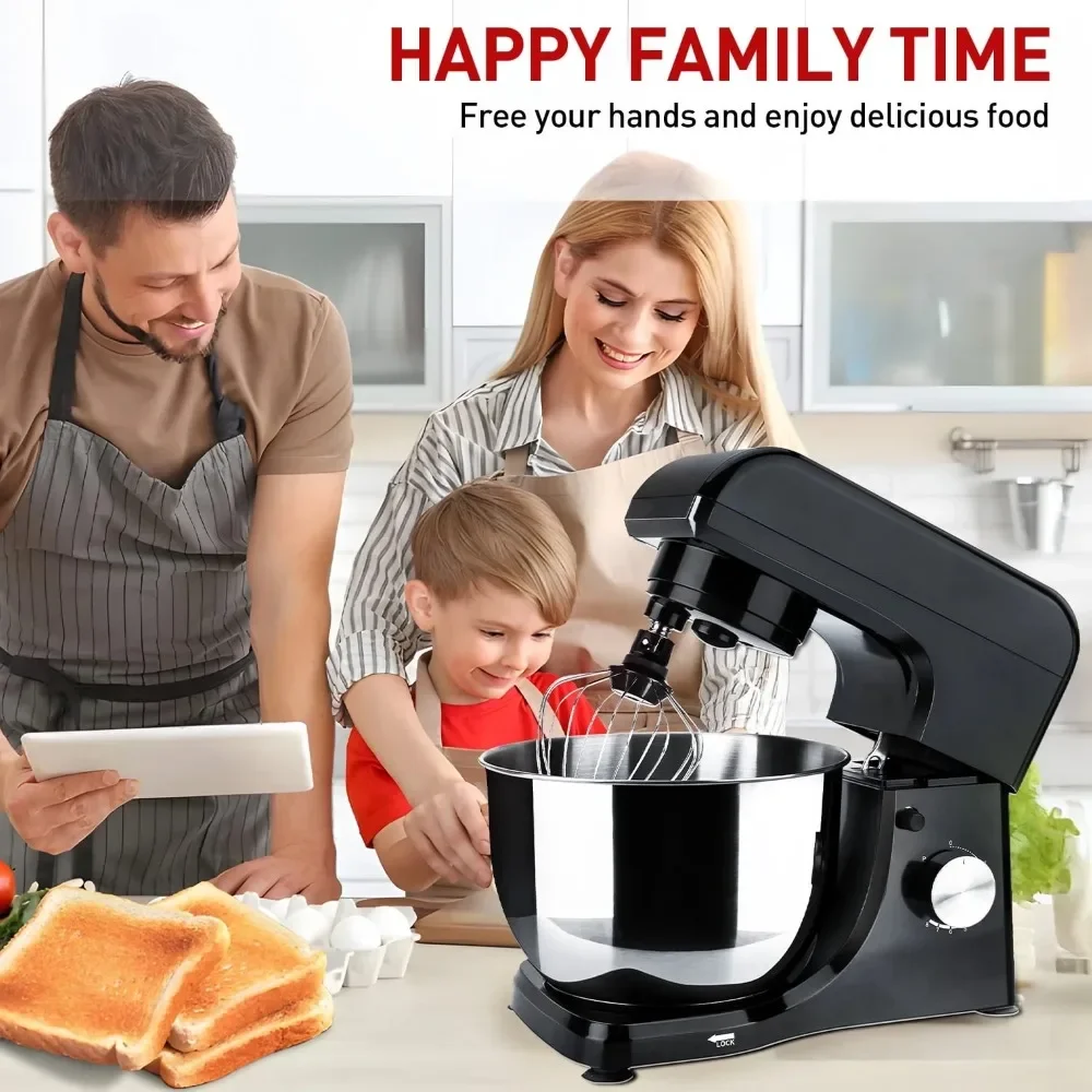 Household stand mixers with one-button release tilted head design, allow access to install or uninstall the bowl and accessories easily; our electric stand mixer has 4 non-slip suction feet at the machine bottom can prevent the dough mixer from moving when it is working, making it more stable and safe.