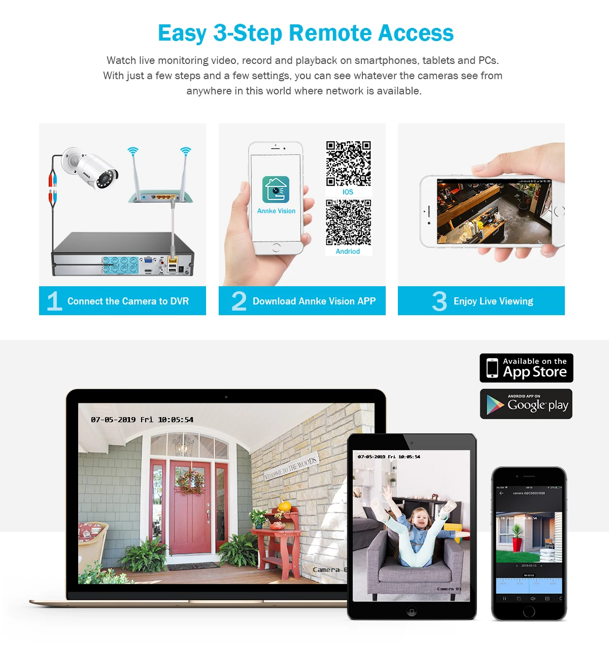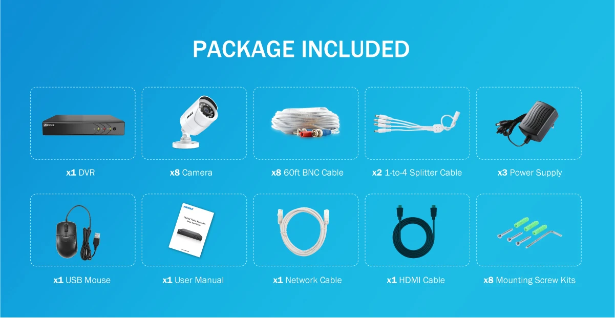 ANNKE 1080P H.265+ 8CH CCTV Camera DVR System 8pcs IP66 Waterproof 2.0MP Bullet Cameras Home Video Security CCTV Kit