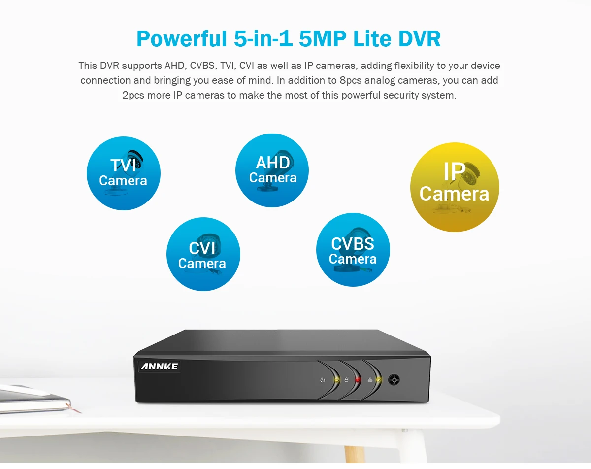 8CH Analog HD/Analog + 2CH IP Video (up to 12 channel when IP enhanced mode on) |