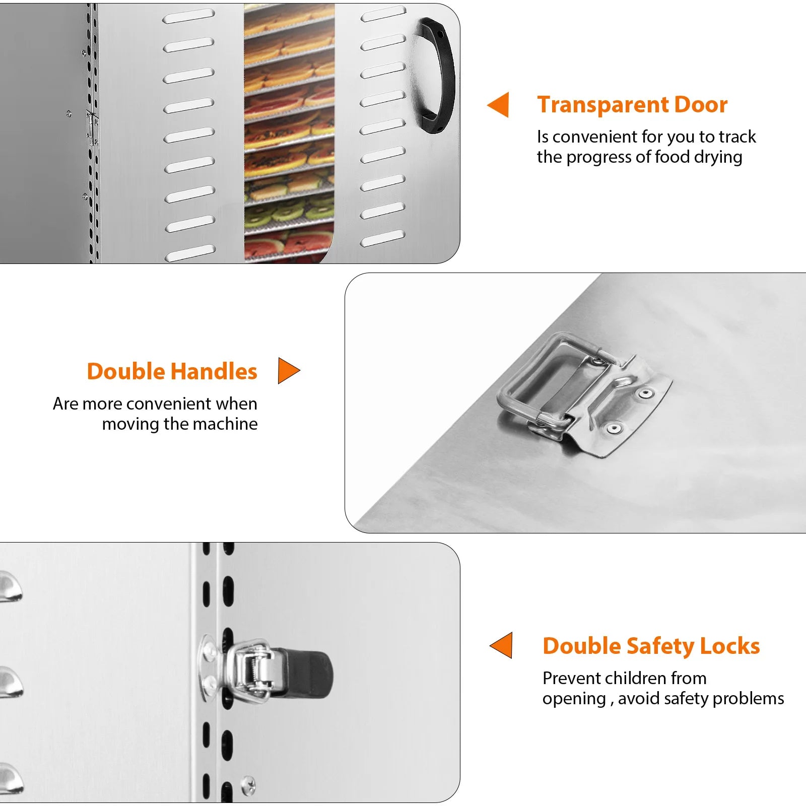 SHICUO 20 Tray Commercial Food Dehydrator Stainless Steel LED Display