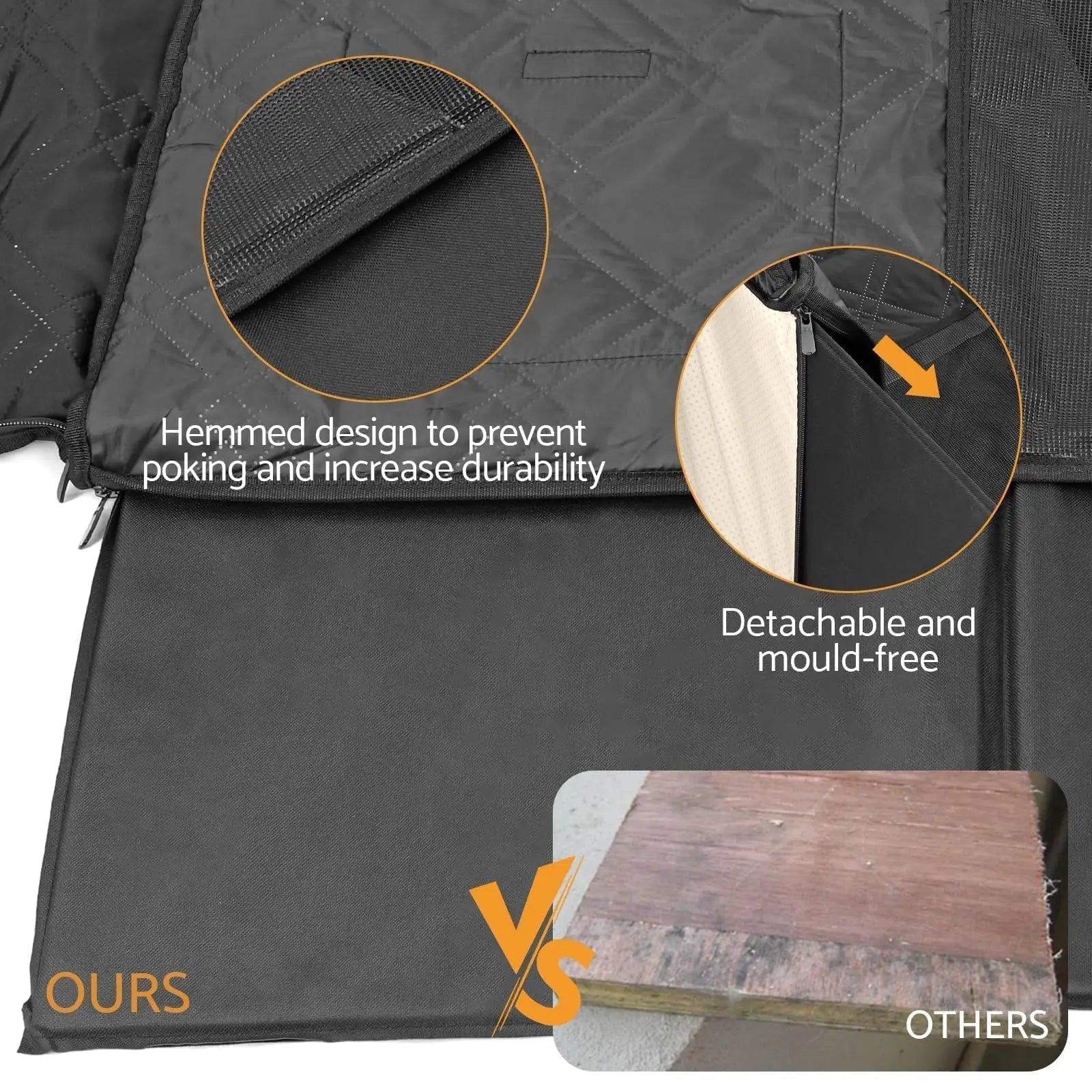 All-round Protection: Crafted from high-quality, six-layer materials, including water-resistant and anti-scratch fabrics, this cover offers comprehensive protection. The higher door protectors safeguard against scratches, while the waterproof design prevents spills and stains. Ideal for all dog breeds, it ensures that both the backseat and vehicle interior stay clean and undamaged