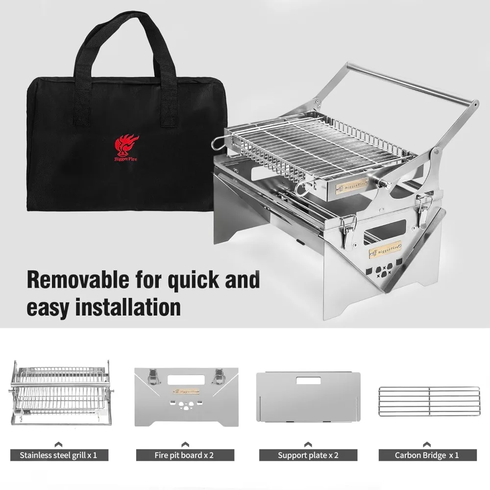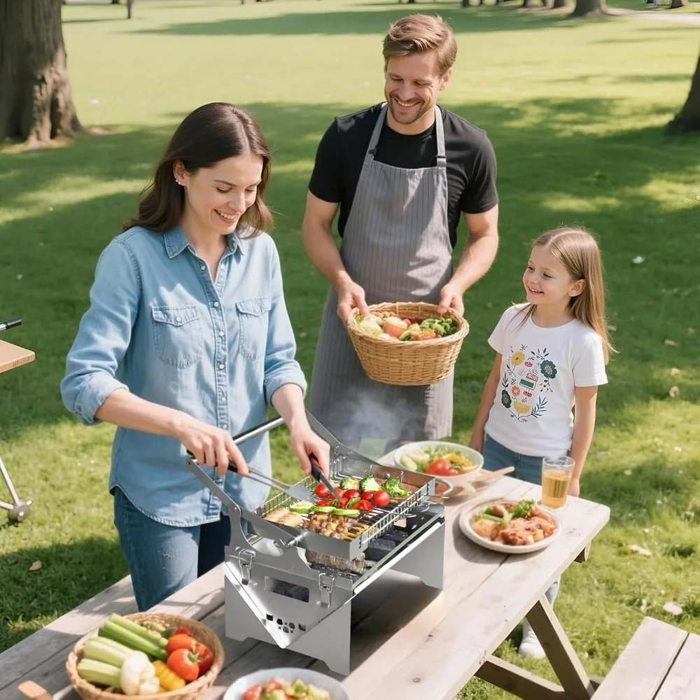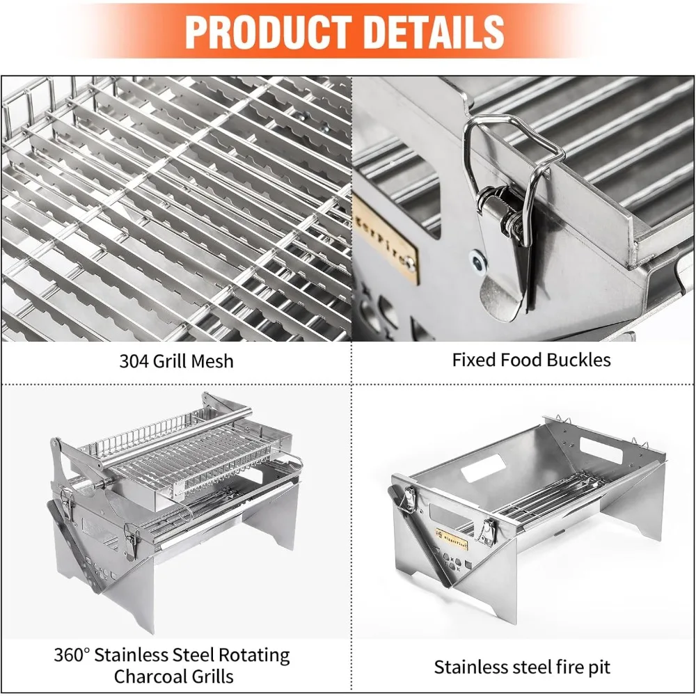 Portable Stainless Steel Rotating BBQ Grill for Outdoor Camping and Detachable Charcoal Grilling