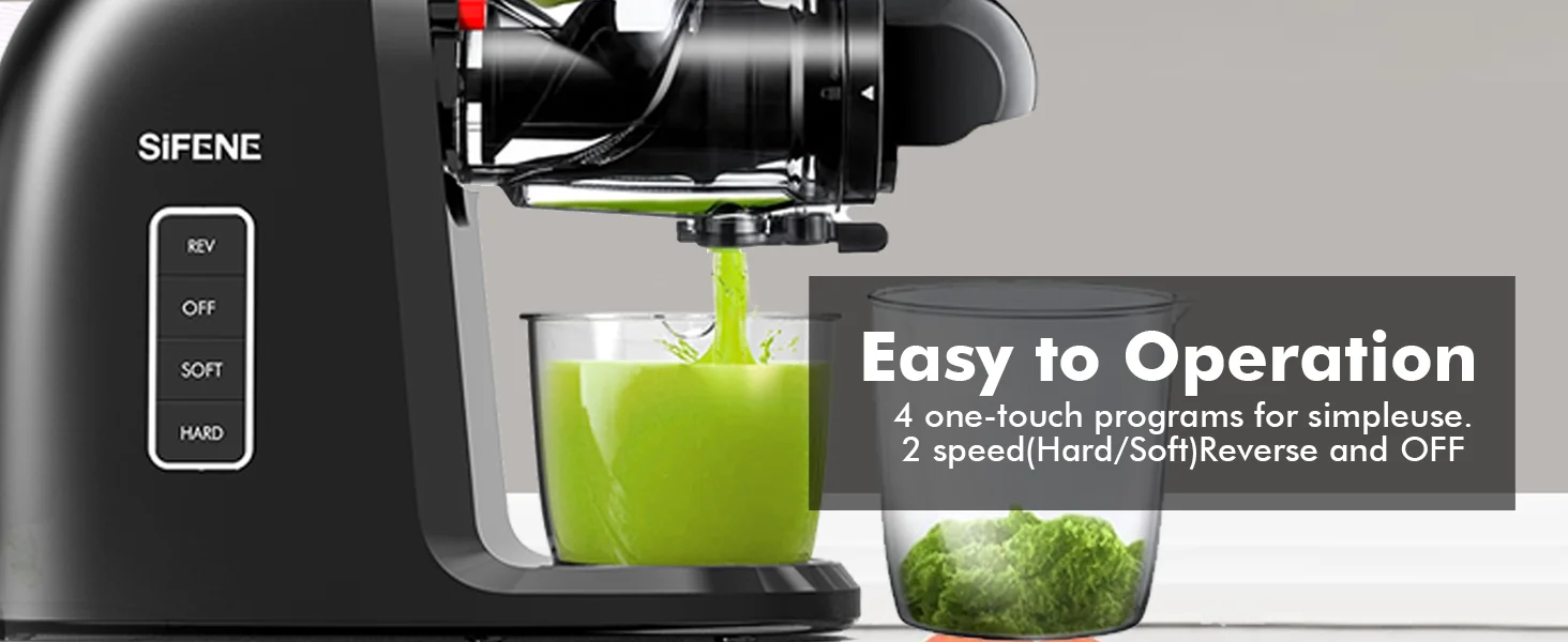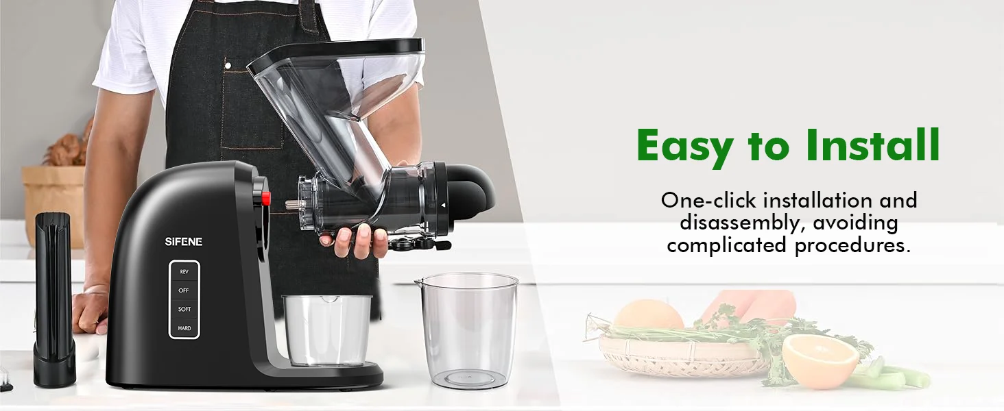 【Dual Modes & Intelligent Reverse Function】Catering to every juicing need, our slow extractor offers 'Soft Mode' for juicier fruits (like oranges and grapes) and 'Hard Mode' for sturdier produce (like carrots and apples). Further, the reverse function ensures no piece of fruit or veg goes unjuiced, reducing oxidation and optimizing juice yield.