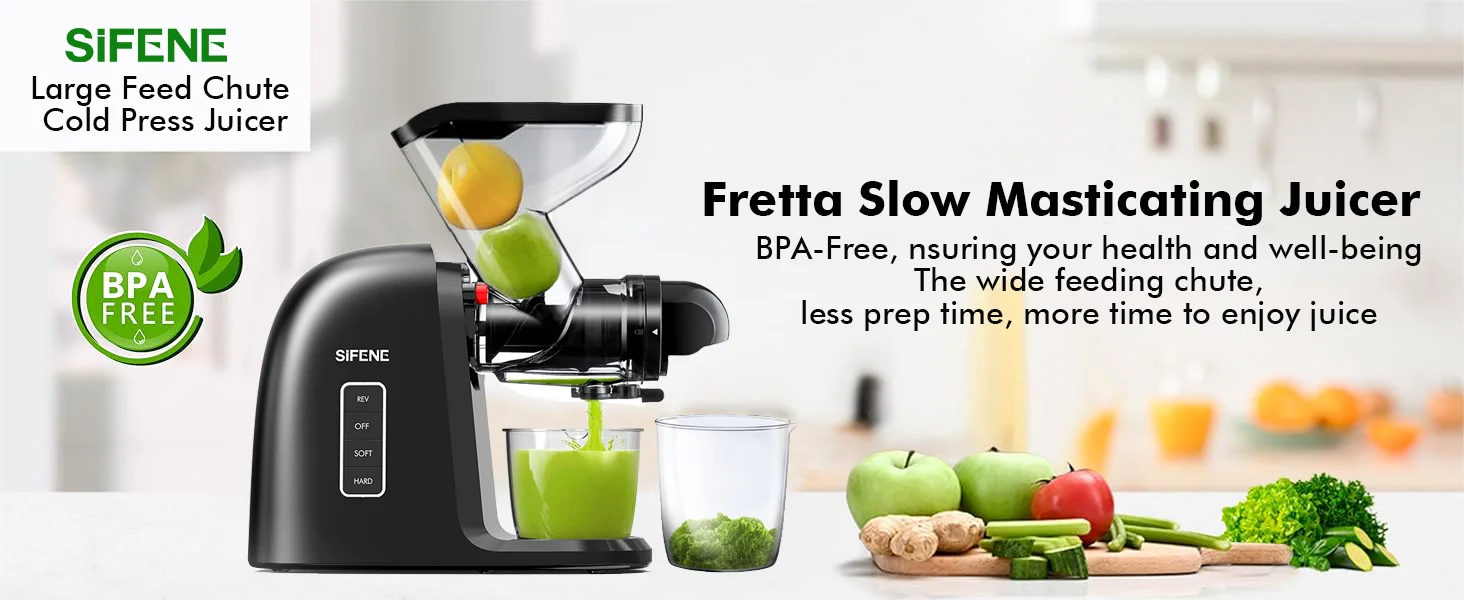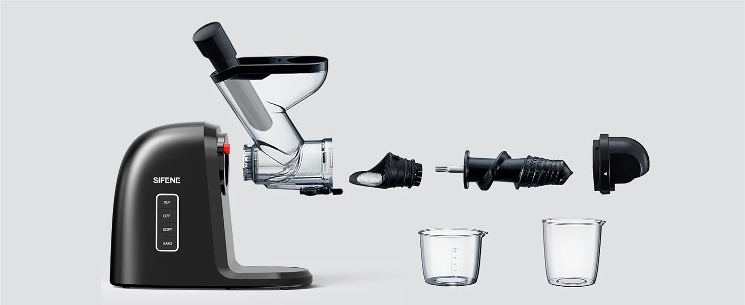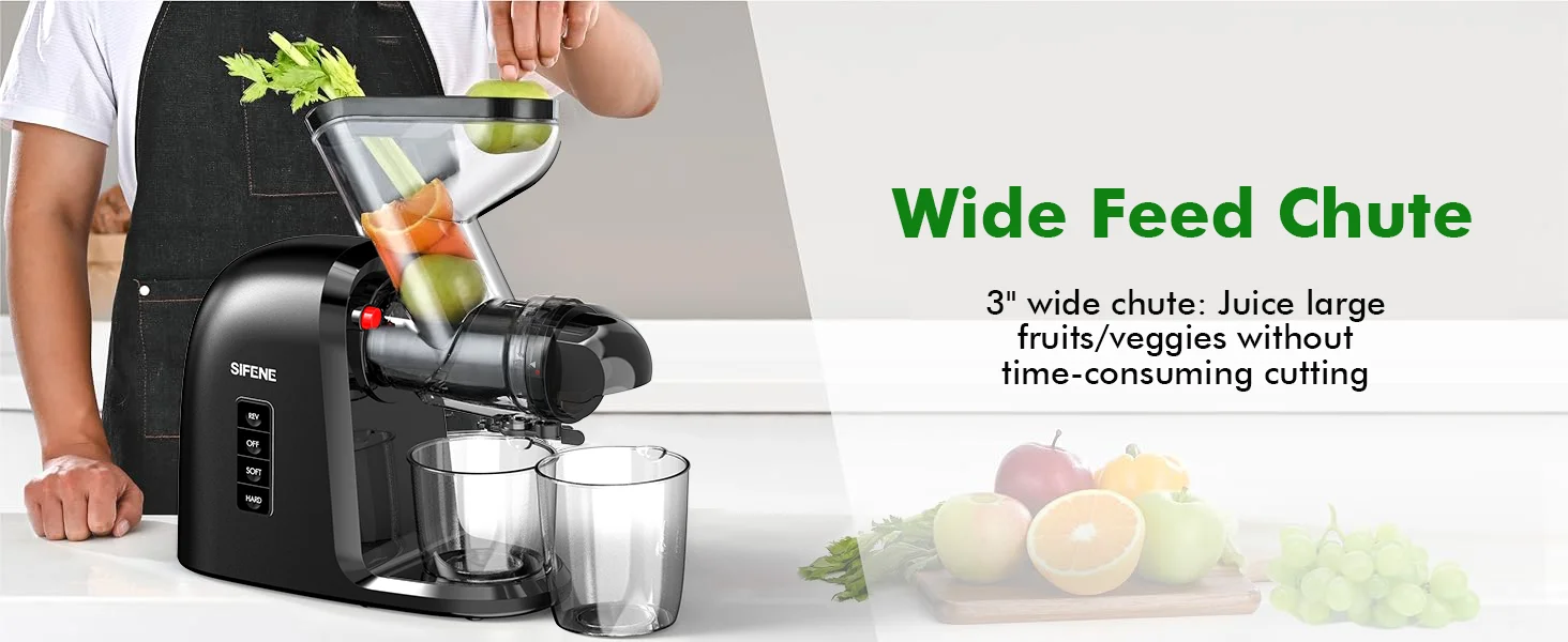 SiFENE Slow Masticating Juicer - Cold Press Machine for Whole Fruits & Vegetables - Anti-Clog, Easy to Clean, Wide Chute, Black