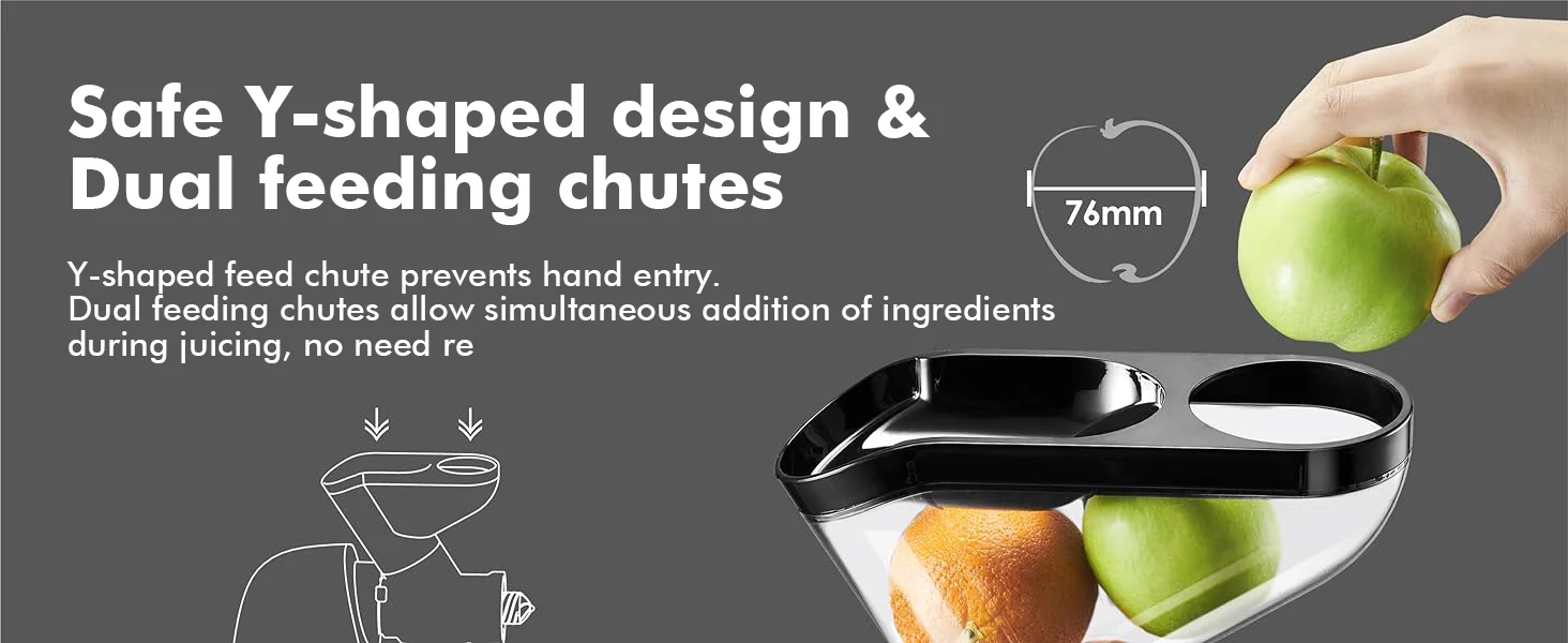 【Superb Size】Skip the chopping hassle with our generous 3-inch feed chute that accepts whole fruits and larger vegetable pieces with comfort.