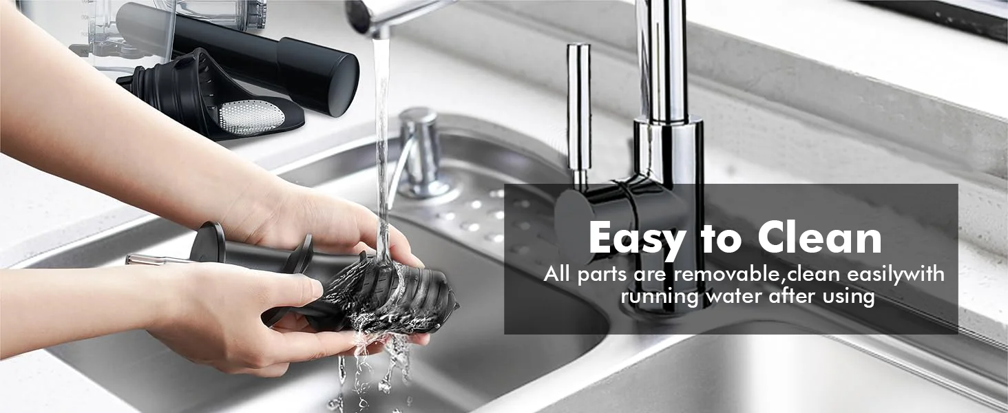 【Fuss-Free Assembly & Cleaning】Easy to disassemble with just one button and a cinch to rinse clean, this juicer also includes a handy brush for a thorough cleanup of the juicing screen.