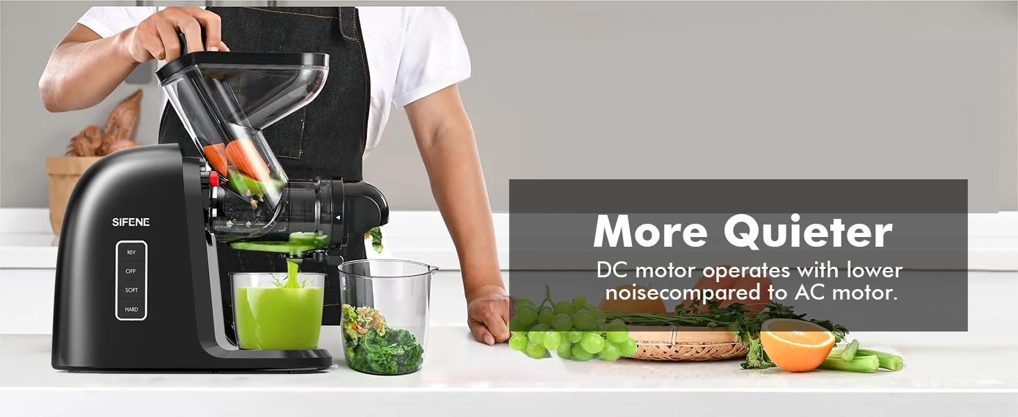 【Auger Upgrade & Whisper-Quiet DC Motor】Equipped with a top-tier auger and low-noise DC motor, our juicer operates in quietude so you can juice without disturbing your loved ones. Juice extraction is efficient, easy, and worry-free.