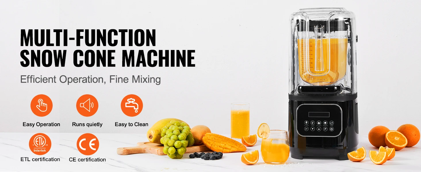 Silent Operation: Equipped with a thickened soundproof cover, it effectively reduces operational noise and prevents juice splashing and leakage during mixing, providing you with a comfortable juicing experience. The food-grade cup body is BPA-free, durable, and resistant to falls. The commercial countertop blender is also ETL and CE certified for safety and hygiene.