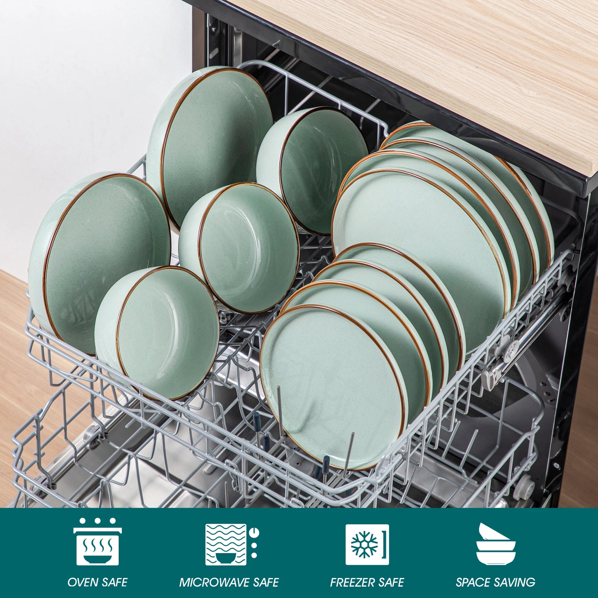 vancasso LOIRE 16/32 Piece Green Ceramic Dinnerware Set Oven Safe Stoneware Set with 4 PCS Dinner Plate/Dessert Plate/Soup/ Bowl