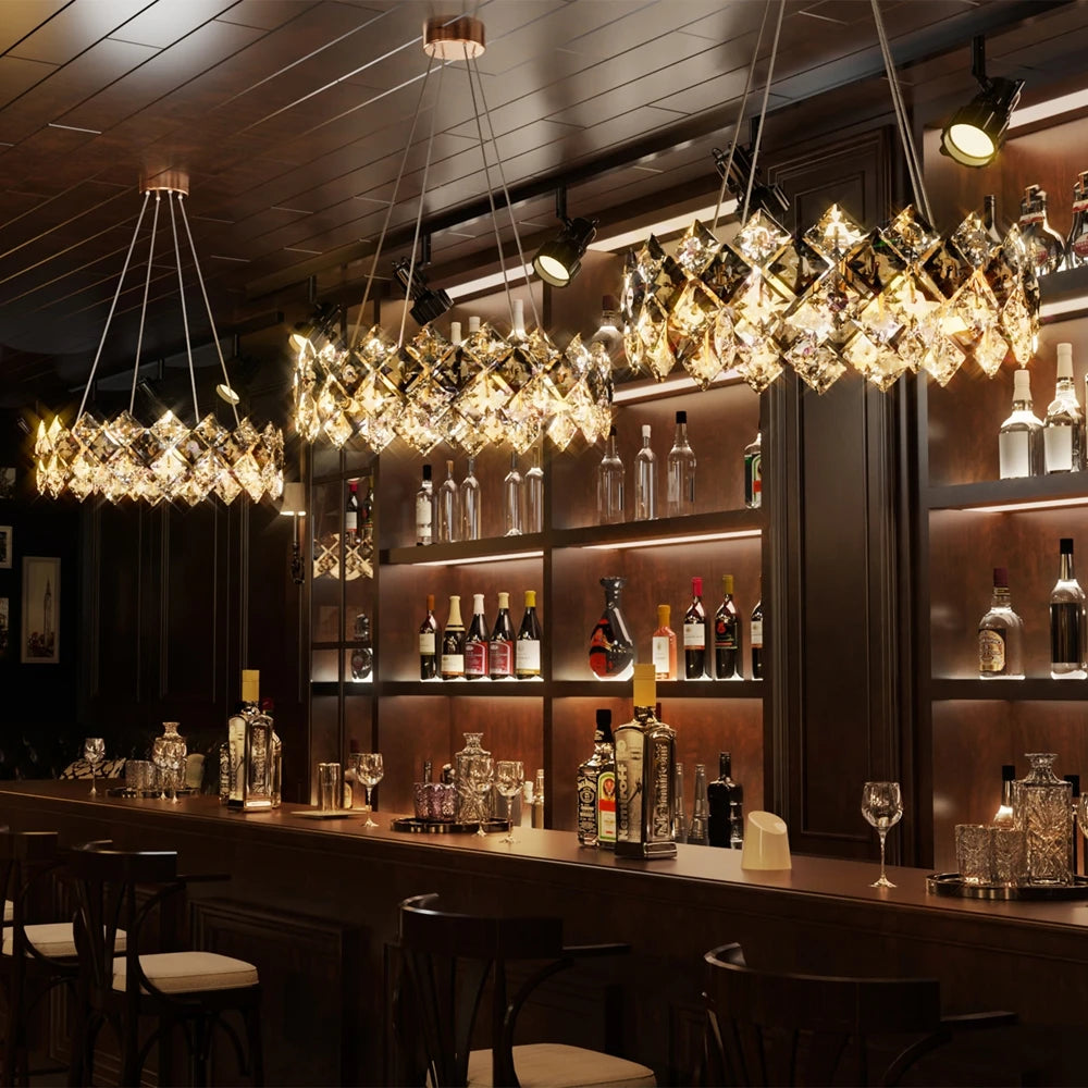 - Elegant contemporary design with a metal frame and crystal accents creates a centerpiece that elevates your spaces, from kitchens to dining areas, corridors, bedrooms, hotel lobbies, and exhibition halls.